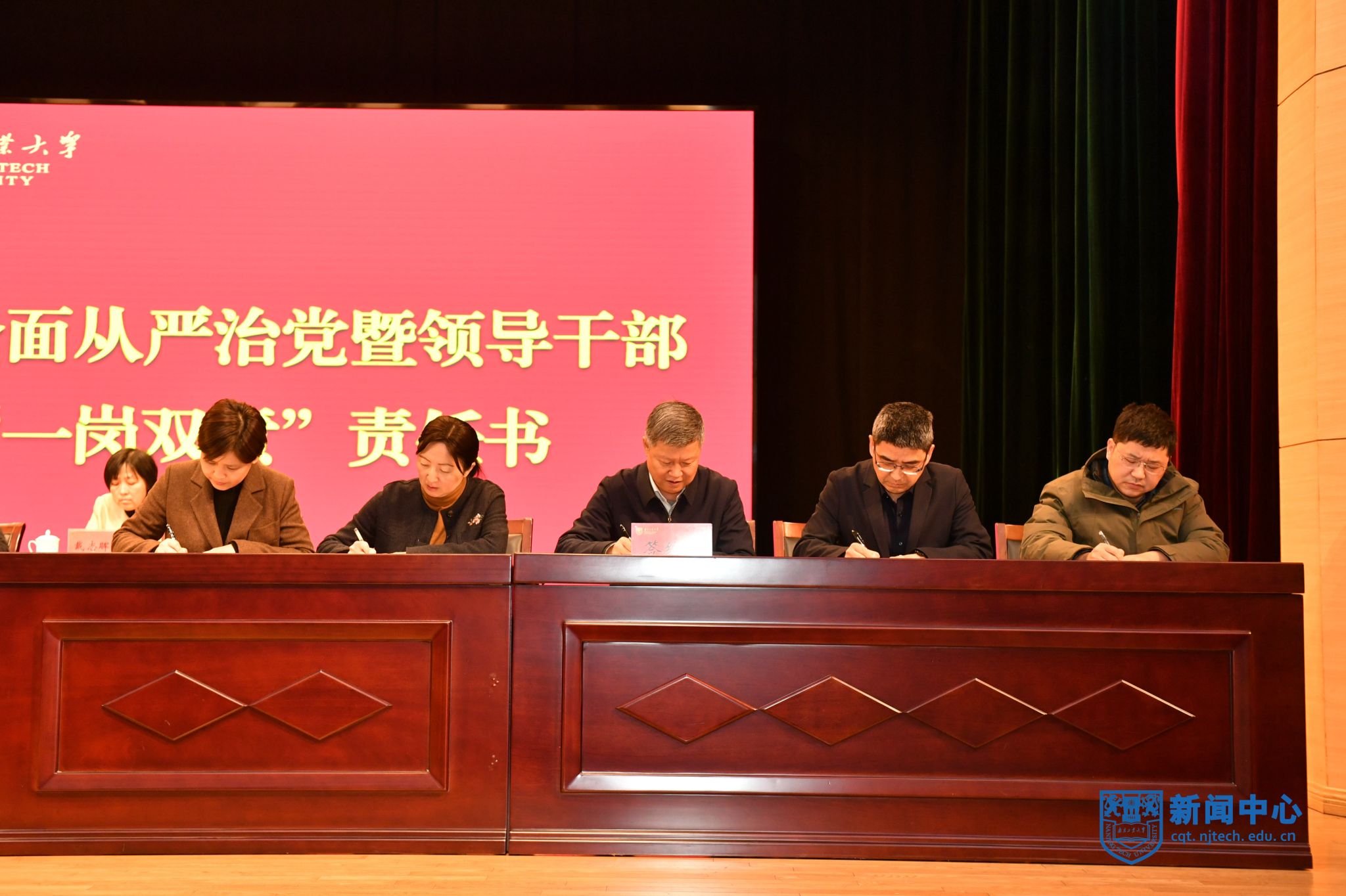 會上,與會人員集體觀看了警示教育專題片。校黨委書記芮鴻巖與校領導班子成員、二級黨組織書記代表簽訂了全面從嚴治黨暨領導干部“一崗雙責”責任書,安全科學與工程學院黨委書記喻源、企業黨工委書記潘運軍、馬克思主義學院院長眭國榮、計劃財務處處長葉青松作交流發言。