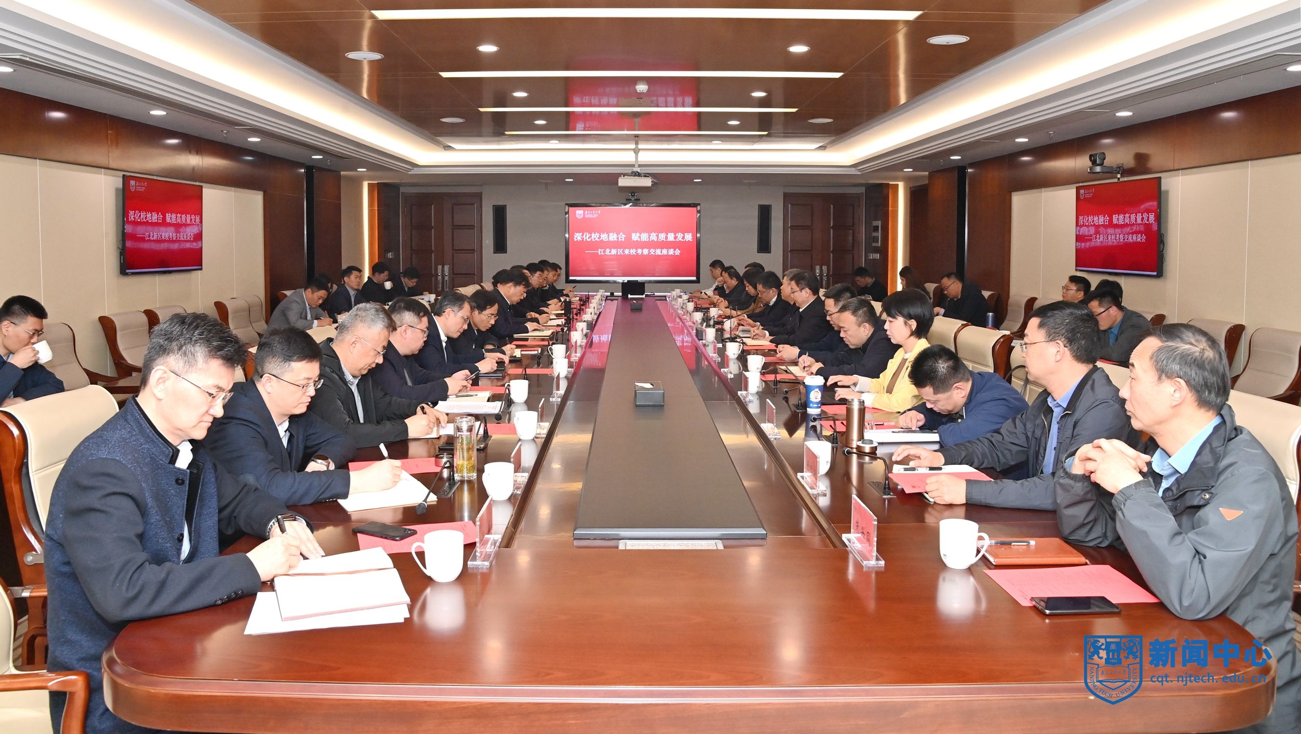 江北新區管委會綜合部、科技創新和大數據管理局、投資促進和商務局、建設與交通局、教育和社會保障局、研創園管辦、生命健康辦、新材料科技園管辦、頂山街道負責人,揚子國資集團、科投集團、江北新區供電公司負責人,學校相關職能部門、直屬平臺、直屬企業負責人參加座談。