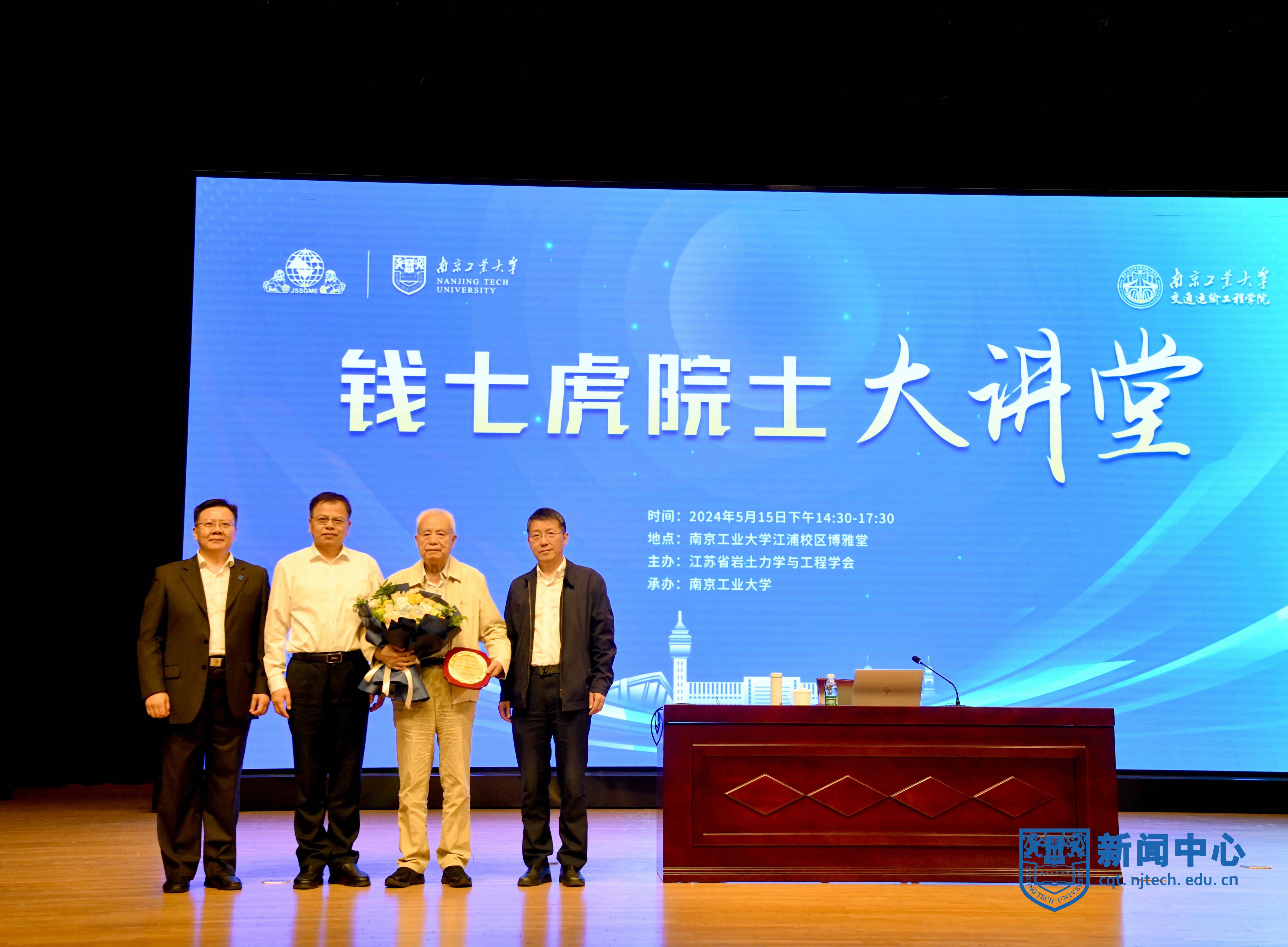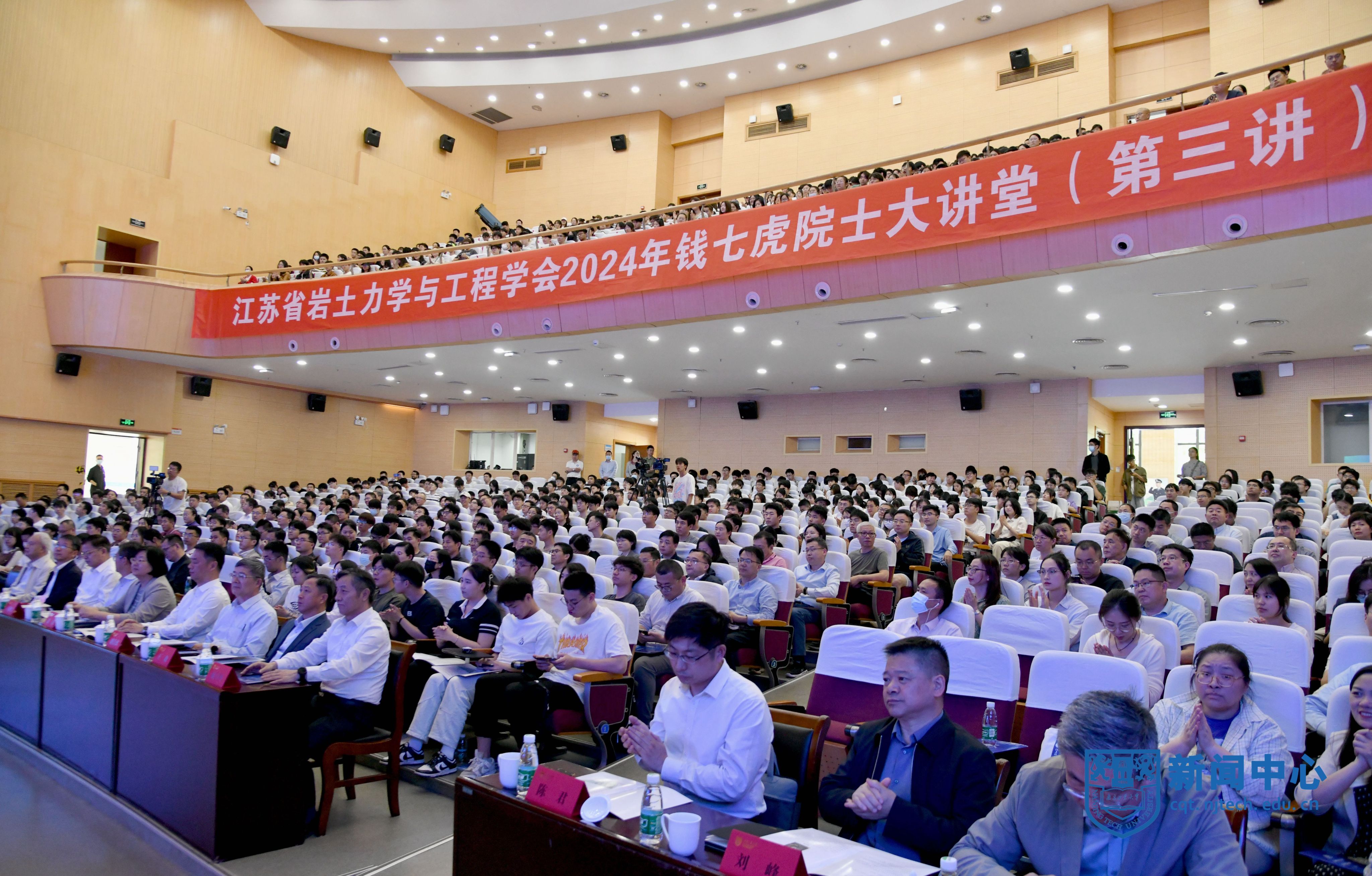 5月15日,由江蘇省科協(xié)指導、江蘇省巖土力學與工程學會主辦、我校承辦的“錢七虎院士大講堂”(第三講)在博雅堂舉行。中國工程院院士、國家最高科學技術(shù)獎獲得者、“八一勛章”獲得者、國家防護工程專家錢七虎,中國工程院院士、我國地質(zhì)工程學科(探礦工程領(lǐng)域)學科帶頭人、中國地質(zhì)大學(北京)校長孫友宏作主題報告。江蘇省科協(xié)黨組成員、副主席徐春生,江蘇省巖土力學與工程學會理事長、東南大學首席教授劉松玉,校長蔣軍成、紀委書記王敦寶參加活動。蔣軍成主持報告會。