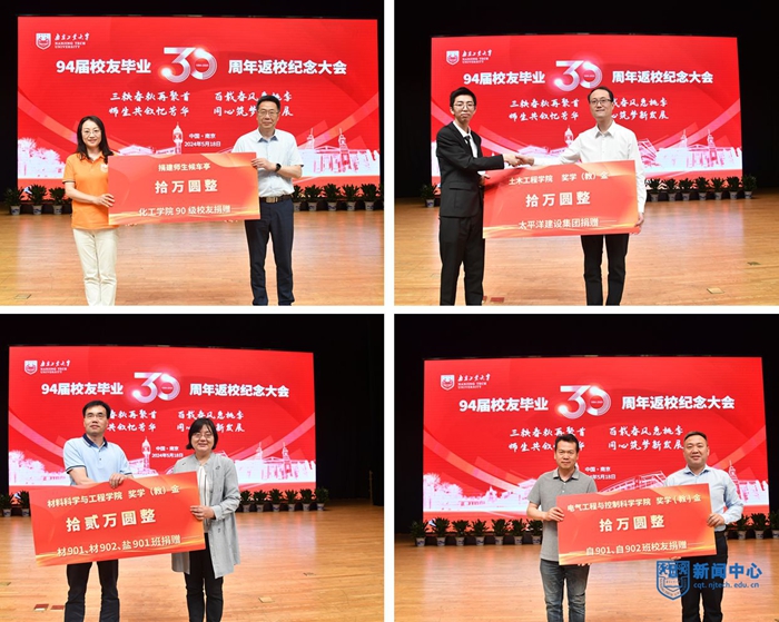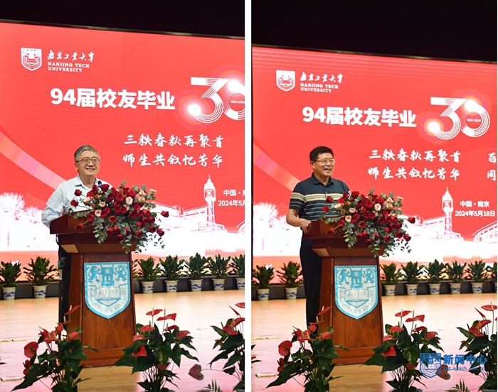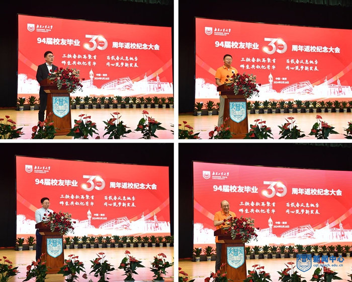 工民建專業21903班艾云、高分子材料專業高902班薛辰晨、生產過程自動化專業自90121班邱亮、化學工程專業工902班袁秀挺作為校友代表發言。四位校友追憶當年在南京求學的美好時光,由衷贊嘆母校的跨越式發展,表示將牢記校訓、賡續奮進,為學校高質量發展貢獻力量。