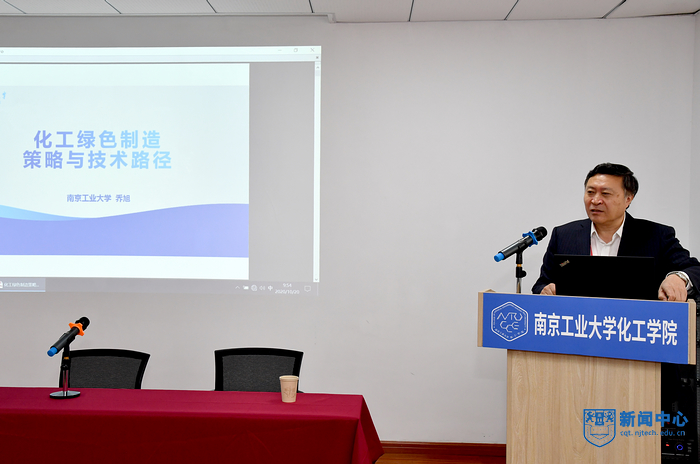 開班儀式結(jié)束后,喬旭校長為全體學(xué)員做了《化工綠色制造策略與技術(shù)路徑》的首場報告。