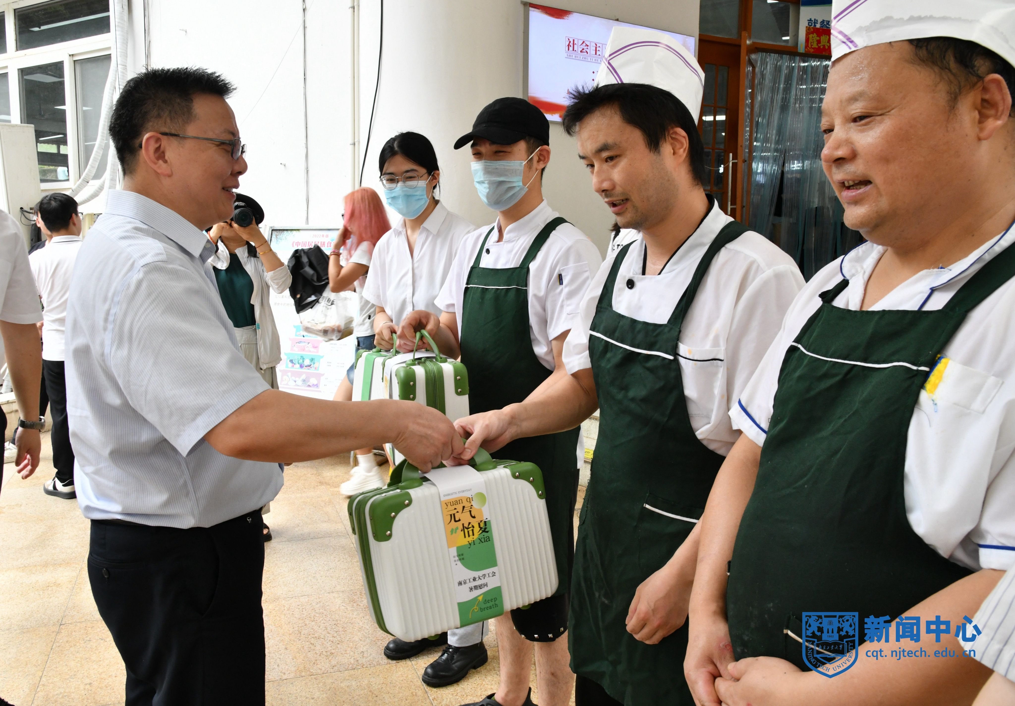 校領導一行先后來到江浦校區(qū)南門、中心配電房、逸夫圖書館、信息管理中心、招生工作現(xiàn)場、化學與分子工程學院、象山學生宿舍改造施工現(xiàn)場、東苑食堂等地,與安保、施工、保供、科研、招生等一線工作人員交流,詳細了解大家的工作、生活、學習情況,對大家冒著高溫酷暑堅守崗位、保障運行、推進學校建設發(fā)展表示了誠摯問候和衷心感謝,并送上防暑降溫用品。