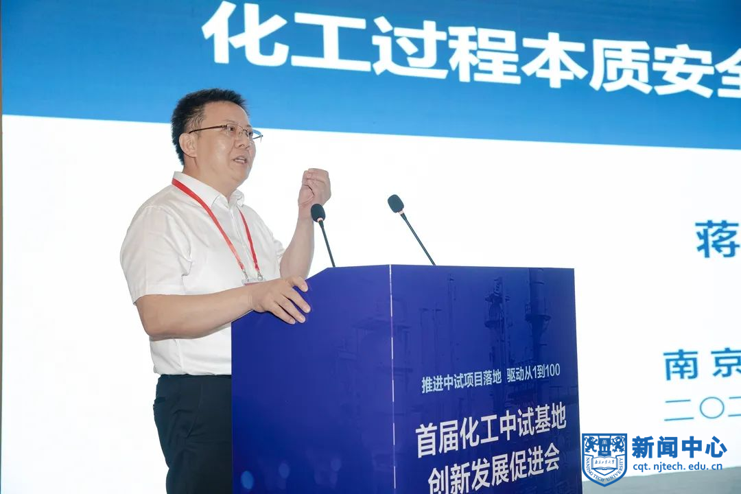 在衢州期間,蔣軍成應邀出席了首屆化工中試基地創新發展促進會,并作大會主旨報告。