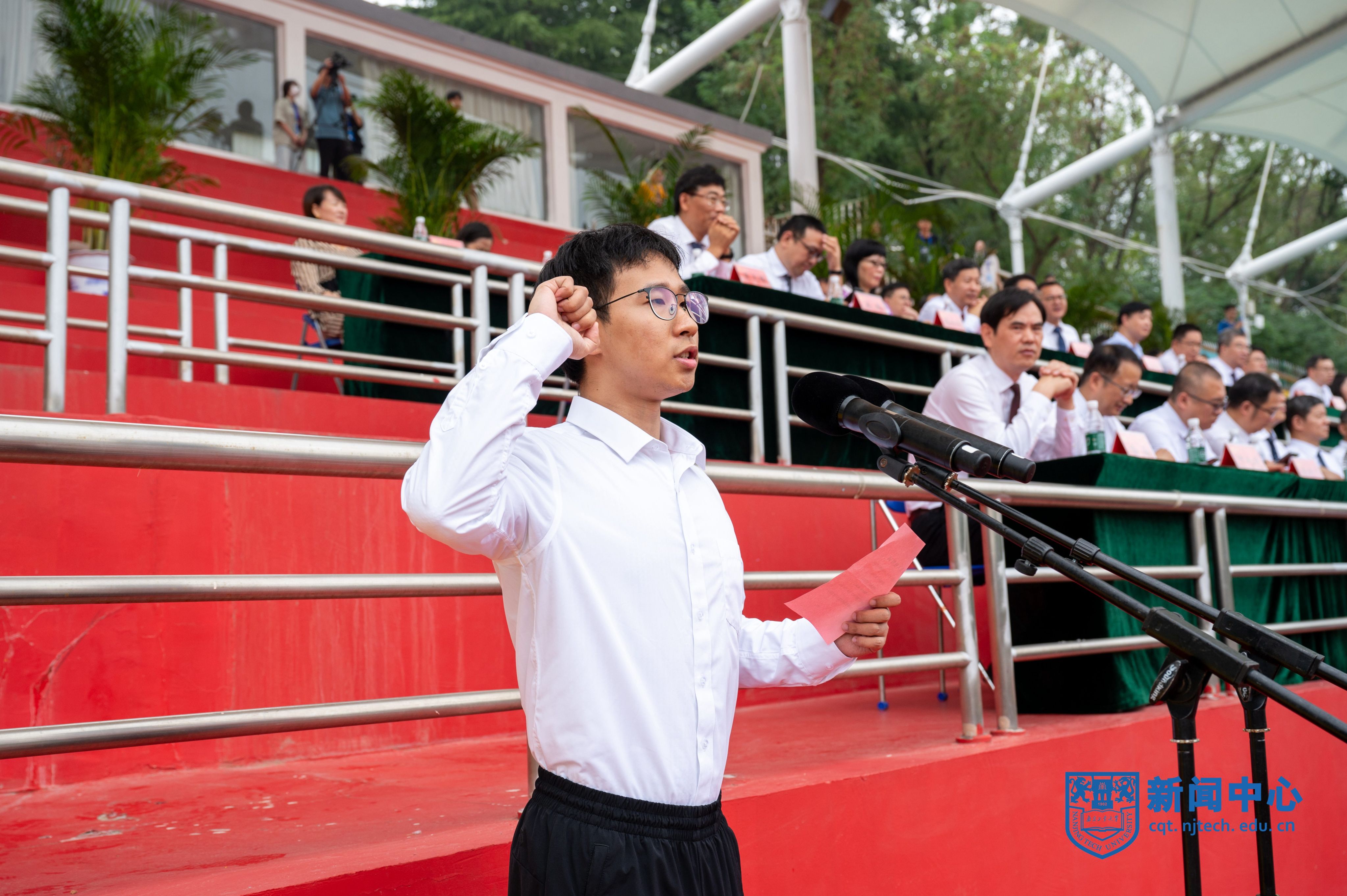 安全科學與工程學院2024級博士研究生任朝欽帶領全體新生宣誓