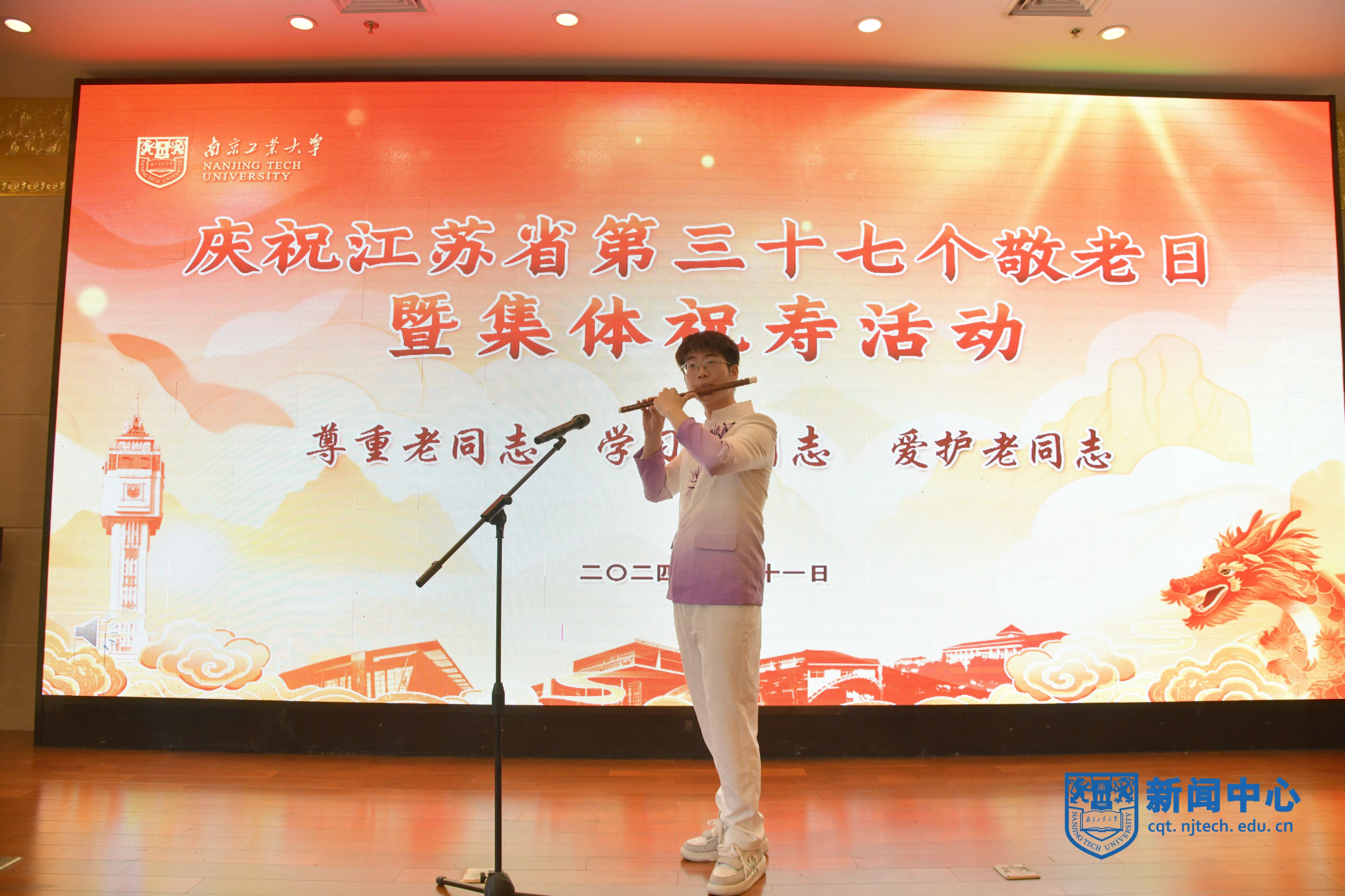 夏侃宣讀了壽星名單。與會領導為壽星贈送鮮花、禮物并合影留念。后勤保障處處長、后勤服務集團總經理朱興同和壽星代表姚虎卿先后發言。校大學生藝術團表演了民樂《喜相逢》《賽馬》,老年大學舞蹈團表演了旗袍秀《石城雅韻》。