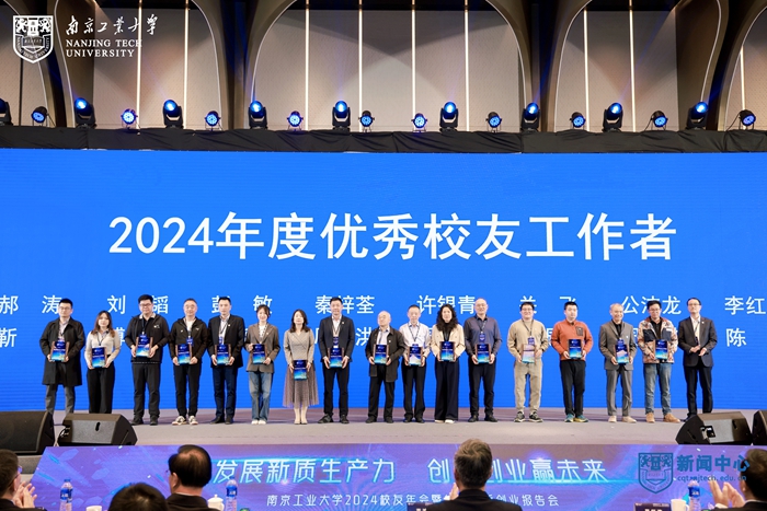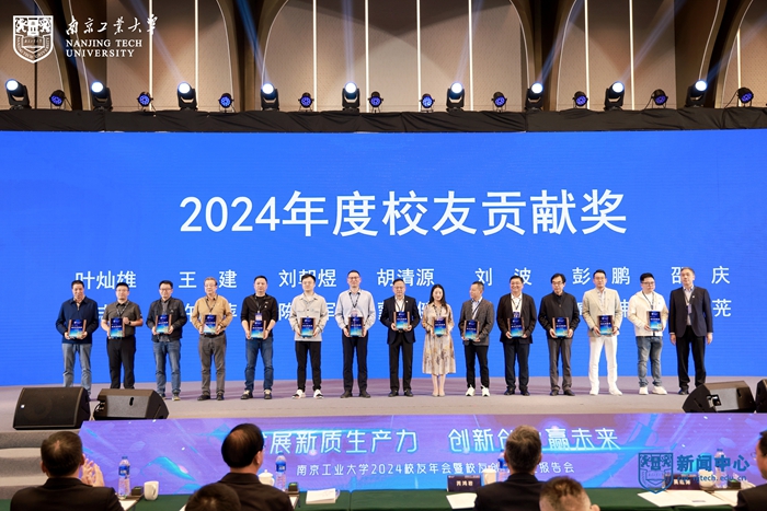 凌祥宣讀《關(guān)于表彰南京工業(yè)大學(xué)校友會(huì)2024年度“特殊貢獻(xiàn)獎(jiǎng)”“優(yōu)秀地方校友會(huì)”“優(yōu)秀校友工作者”和“校友貢獻(xiàn)獎(jiǎng)”的決定》。校領(lǐng)導(dǎo)分別為獲獎(jiǎng)先進(jìn)集體和個(gè)人頒獎(jiǎng)。