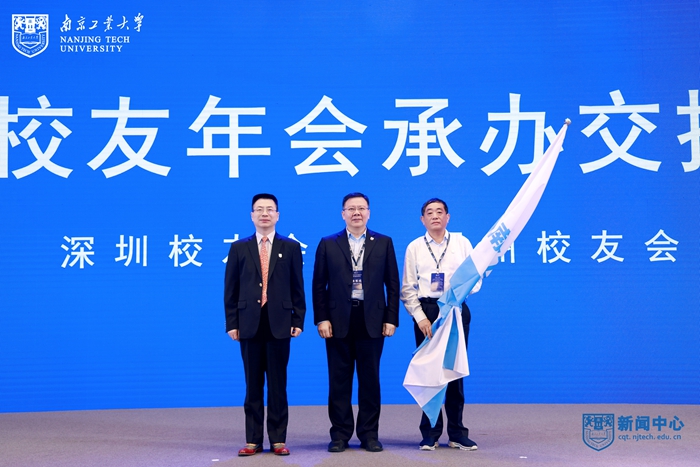 大會(huì)進(jìn)行了2025校友年會(huì)承辦交接儀式。蔣軍成接過(guò)禹良全遞交的會(huì)旗,授旗給揚(yáng)州校友會(huì)會(huì)長(zhǎng)范世宏。