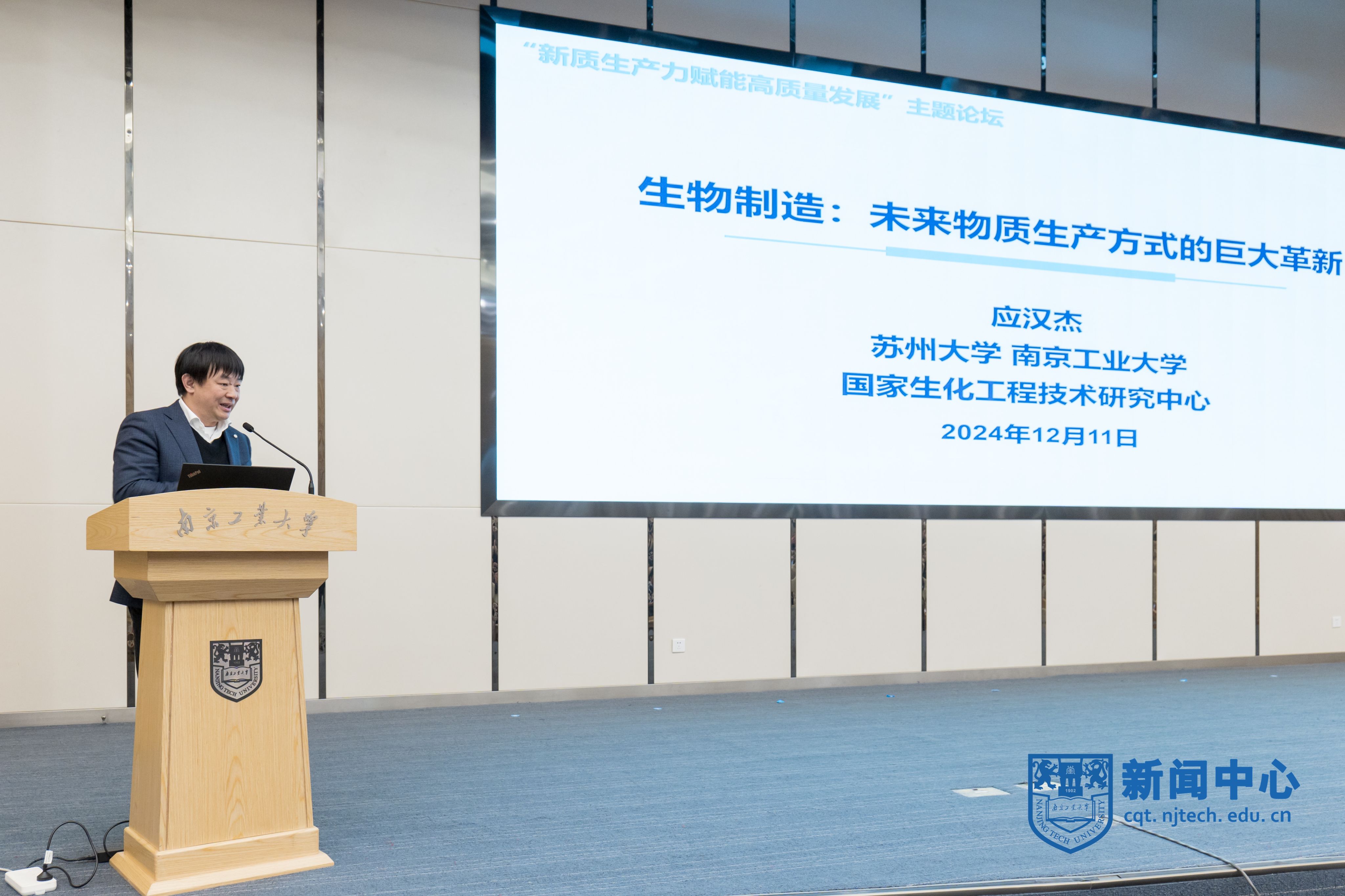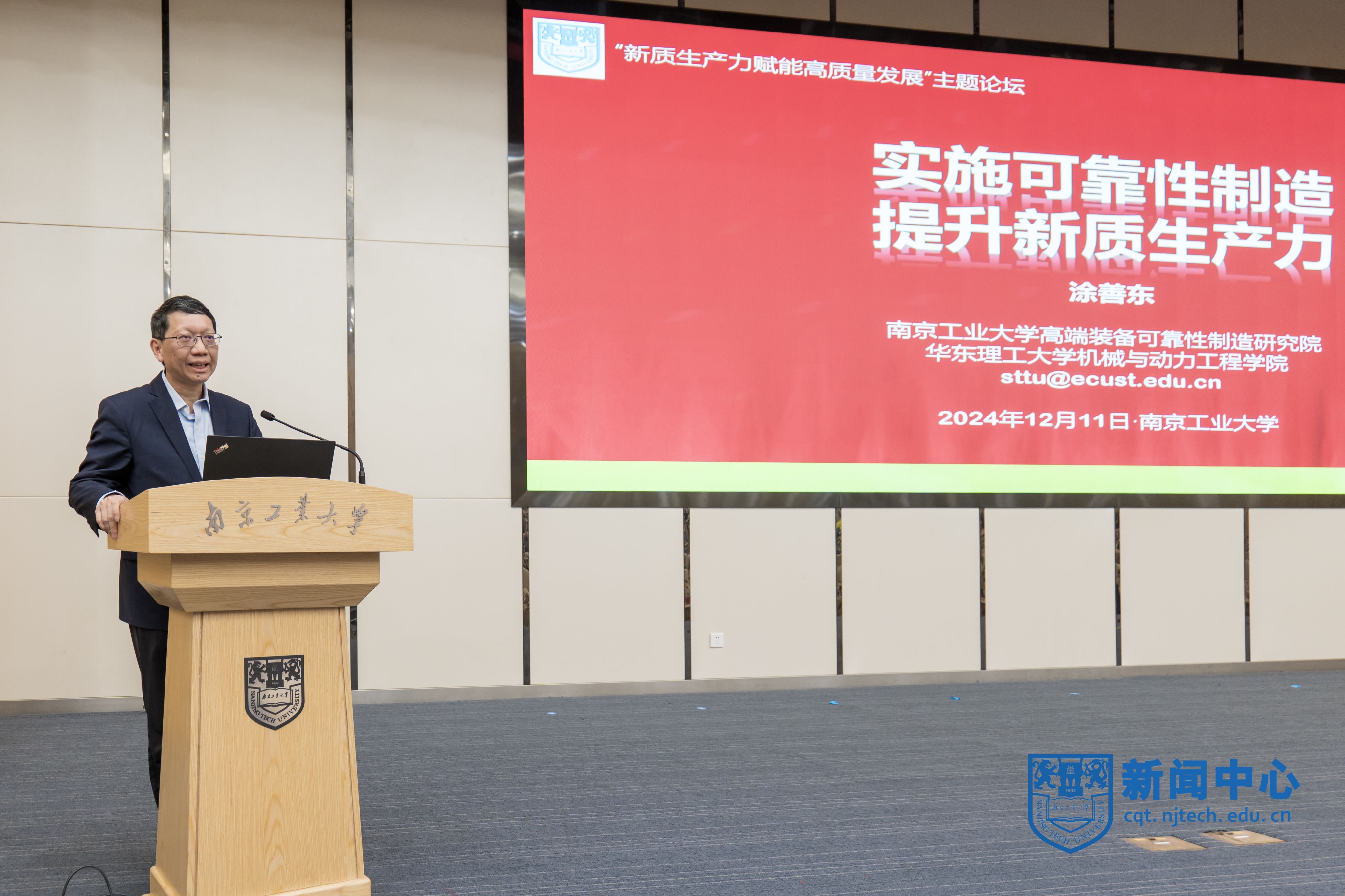 發(fā)布會后,舉行了“新質(zhì)生產(chǎn)力賦能高質(zhì)量發(fā)展”主題論壇。中國工程院院士、南京工業(yè)大學(xué)高端裝備可靠性制造研究院院長、華東理工大學(xué)機(jī)械與動力工程學(xué)院涂善東教授作《實施可靠性制造提升新質(zhì)生產(chǎn)力》主題報告,中國工程院院士、蘇州大學(xué)校長、南京工業(yè)大學(xué)國家生化工程技術(shù)研究中心主任應(yīng)漢杰教授作《生物制造:未來物質(zhì)生產(chǎn)方式的巨大革新》主題報告。