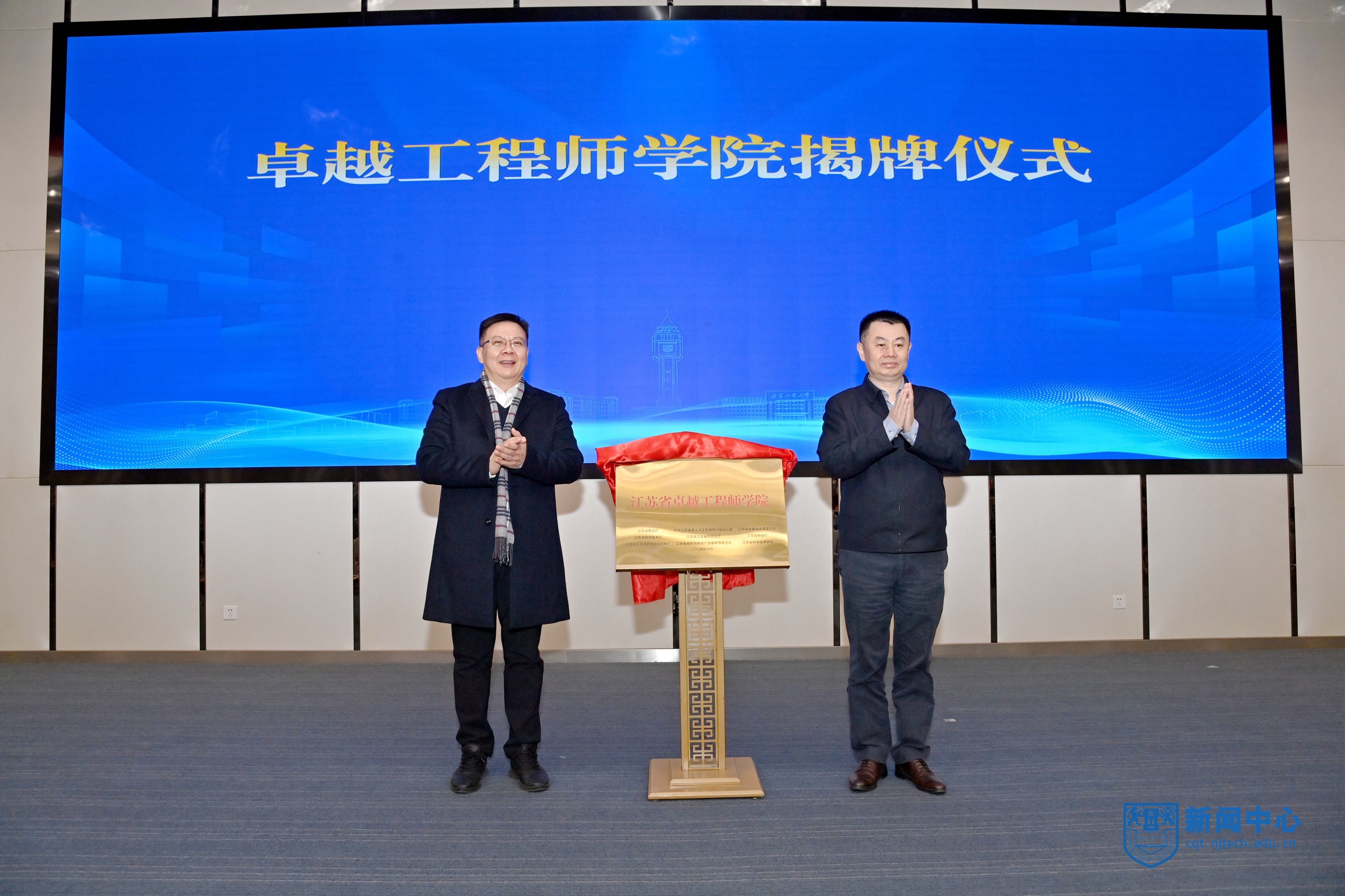 在參會人員的見證下,袁靖宇和蔣軍成共同為學(xué)院揭牌,“南京工業(yè)大學(xué)江蘇省卓越工程師學(xué)院”正式成立。