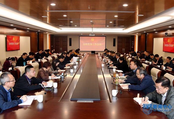 11月19日上午,學校在弘毅樓(國家重點實驗室)三樓會議室召開全校黨務工作會議。校領導崔益虎、吳勝紅、王敦寶出席會議。各黨群部門主要負責人、各基層黨委(黨工委、黨總支)書記參加會議。會議由校黨委副書記吳勝紅主持。