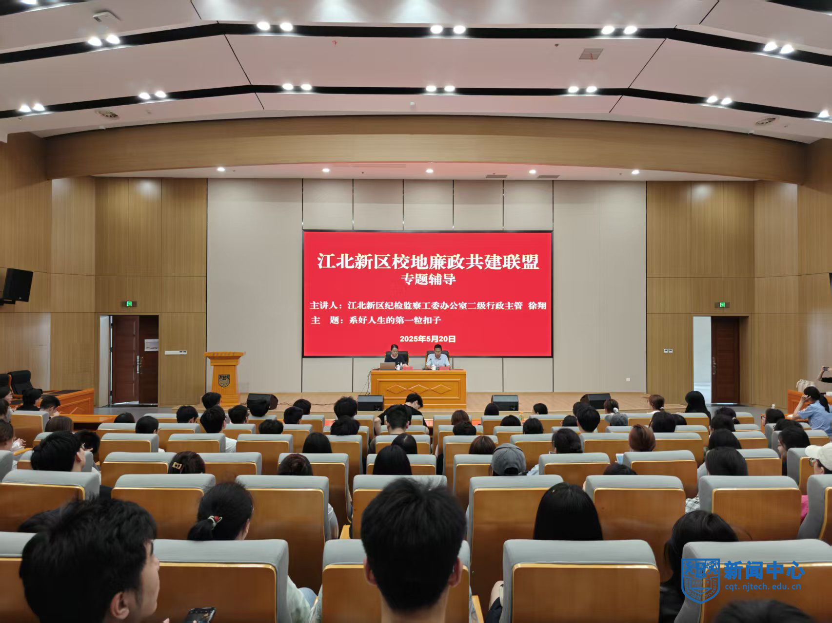 儀式結束后,新區紀檢監察工委紀檢干部徐翔在化學學科樓四樓報告廳,以“系好人生的第一粒扣子”為主題為5所高校師生代表作了專題輔導授課。