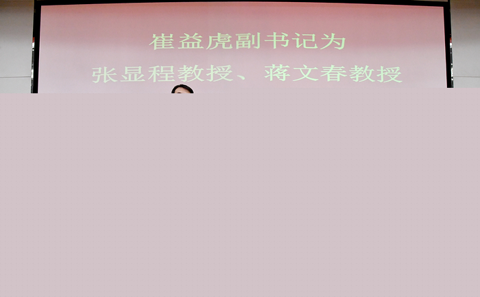 黨委副書記崔益虎為張顯程和蔣文春教授頒發聘書、佩戴校徽