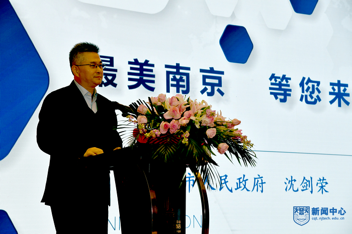 南京市副市長沈劍榮校友致辭。他指出,校友是南京打造創新名城的戰略資源,校友是南工大建設一流大學的重要支撐,校友經濟是促進校地發展的強力助推。沈市長向與會校友介紹了南京市發展校友經濟的政策及近年來取得的成績,歡迎各位校友會回歸南京、深耕南京、助力南京。沈市長盛贊南工大“靶向式”輸送人才、“嵌入式”對接產業、“扎根式”服務地方的特色做法,已形成了“城市+母校+校友”的創新共同體和利益共同體,為在寧省屬高校樹立了標桿。