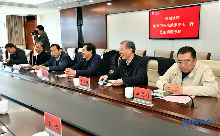 12月4日,中國工程院院士武強,揚子江生態文明創新中心副主任李愛民一行來校考察對接。校長喬旭、副校長凌祥在弘毅樓三樓會議室接待了來賓。