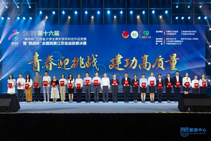 5月24日至26日,由共青團江蘇省委、江蘇省教育廳、江蘇省科學技術協會、江蘇省學生聯合會主辦的第十六屆“挑戰杯”全國大學生課外學術科技作品競賽江蘇省選拔賽決賽在南京農業大學舉行。副省長陳星鶯,團省委、省教育廳、省科協、省學聯、南京市政府相關領導以及來自全省各高校的參賽師生參加開幕式。我校參賽作品獲得特等獎2項、一等獎4項,6件作品成功推報國賽,學校榮獲優秀組織獎。