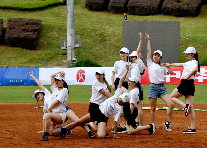 在開球儀式上,校大學生啦啦操隊、龍獅俱樂部和街舞社團為觀眾呈現了精彩的現場表演,校國旗班舉行了升國旗儀式。隨后,國際棒壘球聯合會主席Fraccari Riccardo、秘書長Benchoo Low、國家體育總局手曲棒壘球運動管理中心副主任談鶯、校黨委書記芮鴻巖一同為江蘇隊—香港隊比賽開球。