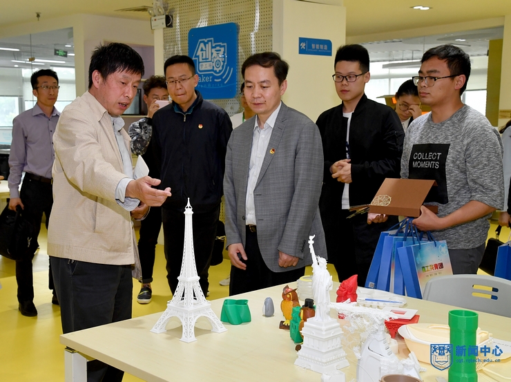 會議還舉行了江蘇省大學(xué)生第二課堂數(shù)據(jù)應(yīng)用中心揭牌儀式。該中心落戶我校,將依托大數(shù)據(jù)分析,更加精準(zhǔn)地引導(dǎo)學(xué)生成長,更加系統(tǒng)、科學(xué)地開展第二課堂實踐育人,推動共青團工作內(nèi)涵發(fā)展。會后,與會來賓參觀了大學(xué)生創(chuàng)客夢工場。