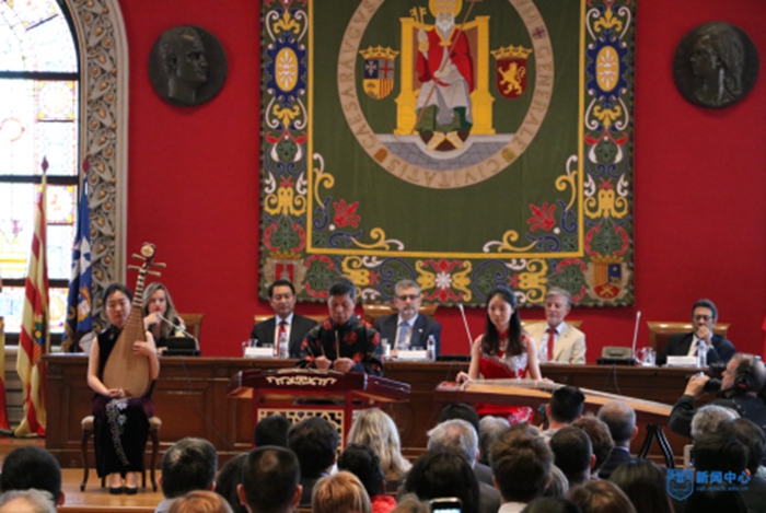 揭牌儀式上,來自中國的藝術(shù)家和師生們獻上了中國傳統(tǒng)樂器演奏、太極拳表演、舞龍舞獅等精彩節(jié)目,充分展現(xiàn)了中國瑰麗的傳統(tǒng)文化,贏得來賓們陣陣掌聲。