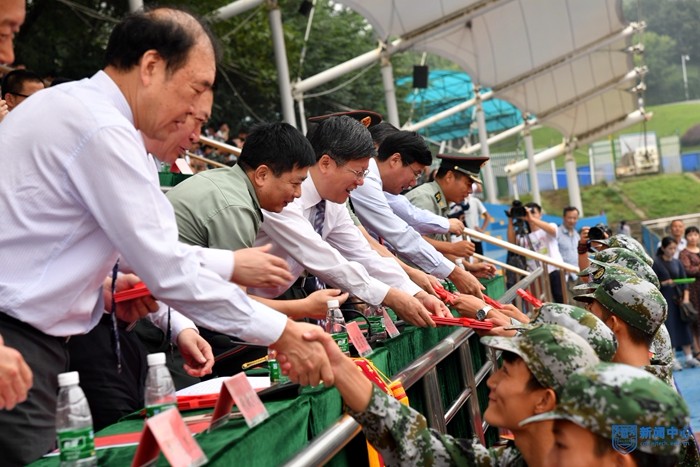 9月22日上午,我校2017級本科生新生軍訓(xùn)匯報暨開學(xué)典禮在江浦校區(qū)田徑場舉行。陸軍工程大學(xué)政委張碧波少將、指揮信息系統(tǒng)學(xué)院院長鄭旭東大校、學(xué)員大隊政委張曉龍上校,鼓樓區(qū)委常委、武裝部政委翁俊軍上校,我校領(lǐng)導(dǎo)芮鴻巖、喬旭、朱躍釗、劉偉慶、牛生杰、崔益虎、張進(jìn)明、鞏建鳴、吳勝紅,各學(xué)院書記、院長、相關(guān)職能部門負(fù)責(zé)人等在主席臺就坐。崔益虎副校長主持軍訓(xùn)匯報暨開學(xué)典禮。