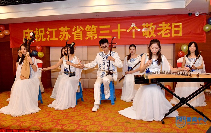 祝壽會上,老壽星代表殷鈺興老師發(fā)言。他表達退休后依然要為祖國、社會、學術奉獻余熱,并祝愿學校的明天更美好。校“夕陽紅”歌舞團的老同志們?yōu)槔蠅坌莻儽硌萘司始姵实墓?jié)目。校民樂團同學們帶來一曲《雨碎江南》,離退休處全體工作人員也登臺獻上一首《我和我的祖國》,表達良好的祝愿!