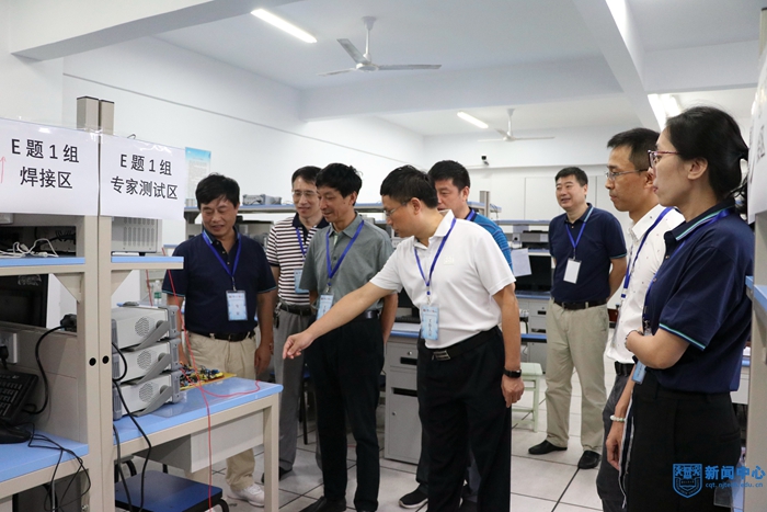 競賽期間,副校長張進明、省大學生電子設計競賽組委會秘書長胡仁杰、校教學事務部部長董軍、副部長錢小明等一行慰問了酷暑中參加測評的所有專家、參賽選手、工作人員和志愿者。