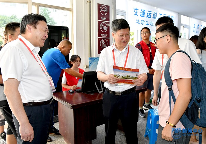 上午,校黨委書記芮鴻巖,校長喬旭,副校長劉偉慶,副校長崔益虎等校領(lǐng)導(dǎo)來到藝術(shù)、化工、生工、材料、土木等學(xué)院的新生接待工作現(xiàn)場,熱烈歡迎2018級研究生新生,看望慰問工作人員和學(xué)生志愿者,仔細(xì)詢問研究生新生的報到情況,并和辦理手續(xù)的研究生親切交流。