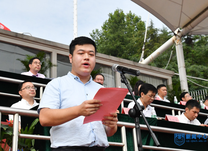 生物與制藥工程學院生物工程類1801班李彥宇作為新生代表發言,她表示看到大師與美景合一的學校,驕傲與自豪涌上心頭,承諾一定會彰明美德、廣博學習、靜穆剛毅、知行合一,賡續南工傳奇!老生代表、經濟與管理學院會計1502班的郗培宇講述自己如何成長為校首屆大學生年度人物,鼓勵學弟學妹們要勇于擔當、勤于學習、敢于實踐。化工學院汪勇教授作為教師代表發言,他希望同學們珍惜風景如畫、人文薈萃的校園環境,做好繼續吃苦的準備、勤于思考、專注踏實。