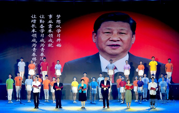 晚會中,一段來自家長、學長、校友、老師的視頻寄語引起了強烈共鳴。中國工程院院士、我校唐明述教授囑咐全體學子愛黨、愛國、愛人民、愛學校、愛專業、愛教師,打好扎實寬廣的基礎,踐行核心價值觀,立志復興中華。此外,由校團委拍攝的原創微視頻《信仰的力量》預告片拉開了學校“青年大學習”行動的序幕。