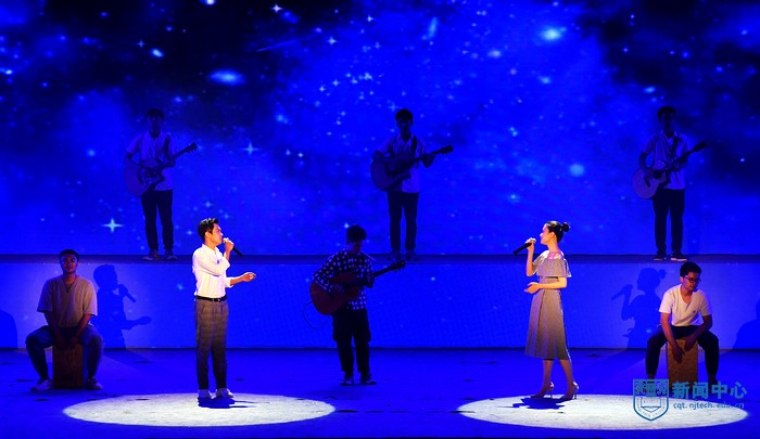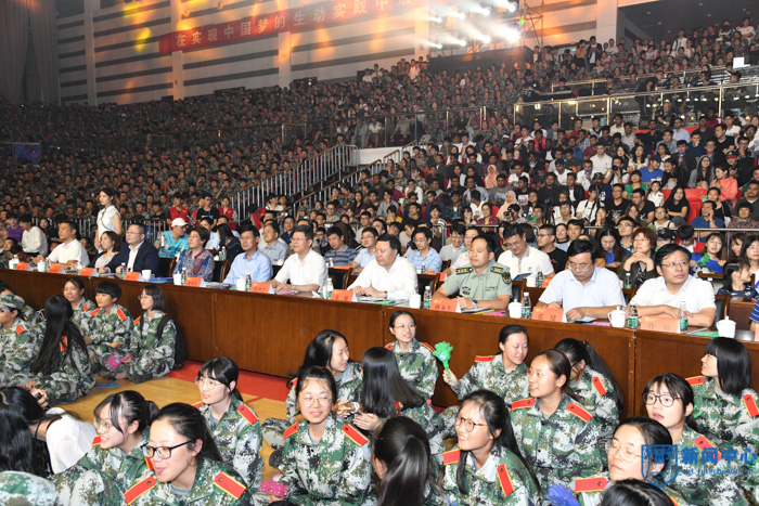 9月25日、26日兩晚,校2018年迎新晚會在江浦校區體育館舉行。校領導芮鴻巖、喬旭、朱躍釗、劉偉慶、崔益虎、張進明、邢衛紅,新生軍訓旅旅長蔣永生、副旅長石亮等領導和嘉賓,各職能部門負責人、各學院黨委書記、黨委副書記、團委書記、軍訓教官、新生輔導員,2018級本科生、研究生及留學生代表歡聚一堂,共同觀看演出。