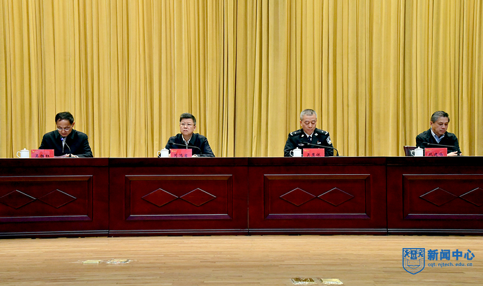 4月2日上午, 學校在江浦校區博雅堂召開2021年綜治安全生產工作暨實驗室安全專項檢查動員會議。江北新區公安分局副局長吳慧銀、內保支隊支隊長吳遠富,校黨委書記芮鴻巖,副校長鞏建鳴出席會議。會議由校黨委副書記吳勝紅主持。