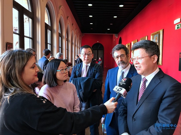 在西班牙,芮書記一行拜訪了中國駐巴塞羅那總領(lǐng)事館,并與總領(lǐng)事林楠女士親切會(huì)見。雙方就加強(qiáng)學(xué)校與西班牙加泰羅尼亞地區(qū)高等院校、科研院所交流合作事宜進(jìn)行深入探討。芮書記簡要介紹了學(xué)校基本情況,表示學(xué)校重視發(fā)揮高校職能,希望開展更多的國際交流,促進(jìn)科研領(lǐng)域的國際合作。林楠總領(lǐng)事充分肯定了我校在加強(qiáng)國際交流合作方面所做出的積極貢獻(xiàn),希望我校與西班牙加泰羅尼亞地區(qū)高校、科教領(lǐng)域密切聯(lián)系、合作共贏。代表團(tuán)次日來到薩拉戈薩,考察了阿拉貢納米材料研究院,并與阿拉貢大區(qū)科技廳廳長María Teresa Gálvez Jaques女士親切會(huì)見,雙方圍繞籌備2019年第二屆中西科技創(chuàng)新合作論壇和拓展合作領(lǐng)域進(jìn)行了深入探討。代表團(tuán)還訪問了薩拉戈薩大學(xué),與薩拉戈薩大學(xué)校長Jose Antonio Mayoral Murillo親切會(huì)談,雙方共同為Huesca、阿拉貢英國國際學(xué)校及Pamplona三個(gè)孔子學(xué)院教學(xué)點(diǎn)揭牌,簽署了“納米材料與科學(xué)碩士、博士”聯(lián)合培養(yǎng)合作意向書。芮書記一行參觀了我校薩拉戈薩大學(xué)孔子學(xué)院,與孔子學(xué)院師生親切交流。在薩拉戈薩大學(xué)Paraninfo舉辦了2019年“南京工業(yè)大學(xué)海外人才專場招聘會(huì)”,招聘會(huì)由薩拉戈薩大學(xué)副校長Francisco Beltrán主持,吸引了西班牙眾多中外學(xué)生參加,Aragon TV電視臺和當(dāng)?shù)刂麍?bào)社Helardo和El periódico對此進(jìn)行了報(bào)道。