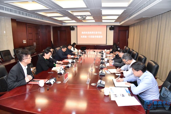 4月22日下午,高淳區委書記吳勇強,區委常委、常務副區長張政,副區長施冬詠及區及政府辦公室、科技局、開發區管委會等負責人來校洽談校地合作。校長喬旭,副校長牛生杰、邢衛紅及教學事務部、研究生院、校長辦公室負責同志參加座談交流。座談會由副校長邢衛紅主持。