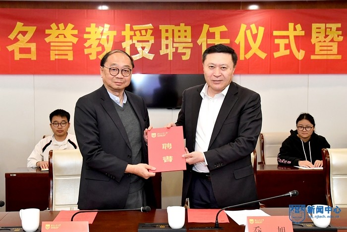 人才資源部副部長、人才引育辦公室主任秦衛明詳細介紹了黃乃正院士的學習研究經歷及科研成果。喬旭校長為黃院士頒發聘書,學生代表上臺獻花并為黃院士佩戴校徽。黃院士對于南工的邀請致以誠摯謝意,并對成為學校一員感到由衷喜悅,期待今后能與南工師生開展更多的科研交流與合作。