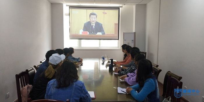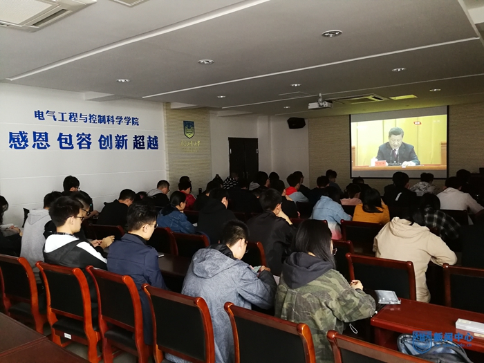 4月30日上午,紀念五四運動100周年大會在人民大會堂舉行。中共中央總書記、國家主席、中央軍委主席習近平出席大會并發表重要講話。我校黨員干部和團員青年、團干部進行集中收看。
