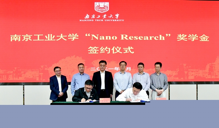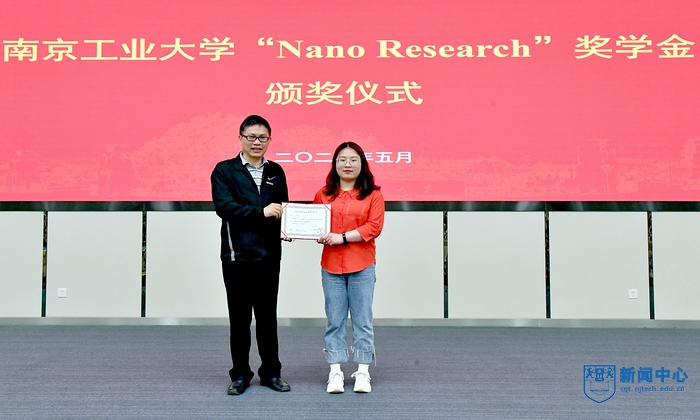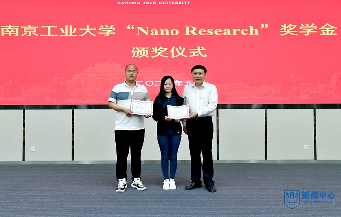 李亞棟院士和喬旭校長分別代表《Nano Research》雜志社和南工大簽訂了獎學金設立協議,并為首屆獲獎學生進行了頒獎。
