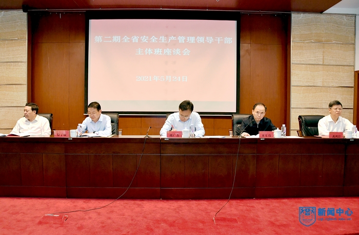 5月24日,第二期全省安全生產管理干部主體班座談會在我校召開,會議圍繞深入學習貫徹習近平總書記關于安全生產重要論述,推進安全生產治理體系和治理能力現代化開展交流研討。省政府黨組成員胡廣杰出席會議并講話。省應急管理廳廳長宋樂偉主持會議。省委教育工委副書記徐子敏,我校黨委書記芮鴻巖、校長喬旭參加會議。