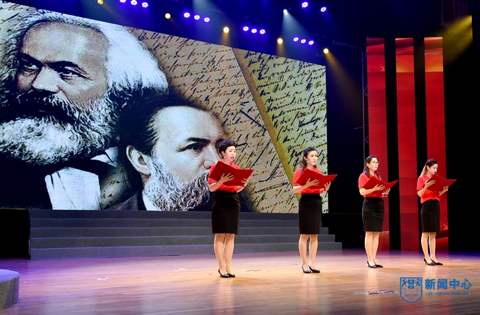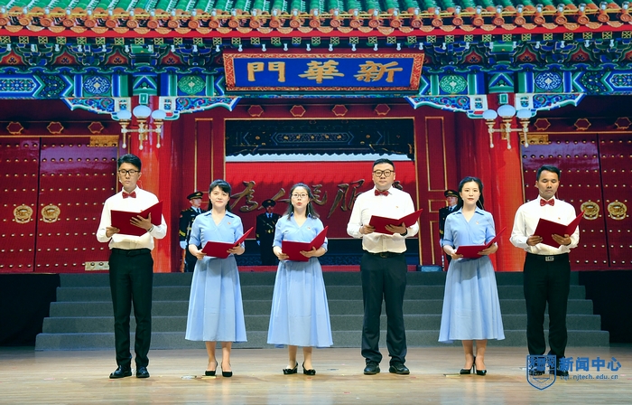 詩會(huì)在多語種誦讀《共產(chǎn)黨宣言》(節(jié)選)中拉開帷幕,分為“開天辟地、改天換地、翻天覆地、驚天動(dòng)地”四個(gè)篇章展開。《百年禮贊》講述了中國共產(chǎn)黨百年風(fēng)雨的艱辛歷程,見證了中國共產(chǎn)黨篳路藍(lán)縷的創(chuàng)業(yè)擔(dān)當(dāng)。國旗護(hù)衛(wèi)隊(duì)員在《我站立的地方是中國》節(jié)目中喊出了愛國青年志當(dāng)報(bào)國的熱血豪情,歲月無悔正青春的豪邁擔(dān)當(dāng)。《為人民服務(wù)》由校部機(jī)關(guān)黨委和后勤黨委選送,體現(xiàn)了中國共產(chǎn)黨人我將無我、不負(fù)人民的精神與情懷。研究生代表誦讀的《錢學(xué)森》和《我有一個(gè)夢》致敬老一輩科研工作者,講述了“共和國脊梁”們科學(xué)救國、科學(xué)報(bào)國、科學(xué)強(qiáng)國的奮斗史。《春天的故事》由退休教師代表繆昌美、顧曉靜朗誦,帶領(lǐng)我們回顧了黨的領(lǐng)導(dǎo)下改革開放以來中國特色社會(huì)主義的奮斗史。測繪學(xué)院俞榮恒同學(xué)(香港籍)領(lǐng)誦《七子之歌》(節(jié)選),傾訴了“失養(yǎng)于祖國、受虐于異類”的悲哀之情,強(qiáng)烈地表達(dá)出拳拳報(bào)國的赤子之心。體育學(xué)院選送的《百年圓夢》深情講述中國體育事業(yè)百年圓夢的艱辛歷程。金萬勤教授率首批全國高校黃大年式教師團(tuán)隊(duì)部分成員演繹的《科學(xué)家精神——科學(xué)精神之光》歌頌了戰(zhàn)略科學(xué)家、時(shí)代楷模黃大年心有大我、至誠報(bào)國的使命擔(dān)當(dāng),贊揚(yáng)了“拼命黃郎”和他的團(tuán)隊(duì)的光榮與夢想?!秱鞒屑t色基因,賡續(xù)百年征程——致敬時(shí)鈞先生》由時(shí)鈞班和時(shí)鈞精神演講比賽獲獎(jiǎng)學(xué)生代表誦讀,展現(xiàn)出南工大人傳承時(shí)鈞精神,勇攀科研高峰的使命與諾言。最后,芮鴻巖書記帶領(lǐng)思政課教師及輔導(dǎo)員代表誦讀《習(xí)近平總書記重要講話》(節(jié)選),再次深入學(xué)習(xí)貫徹習(xí)近平總書記重要論述,把詩會(huì)推向高潮!