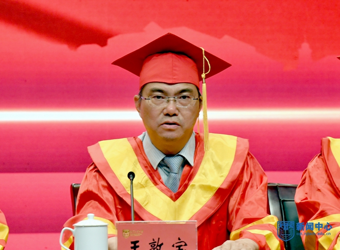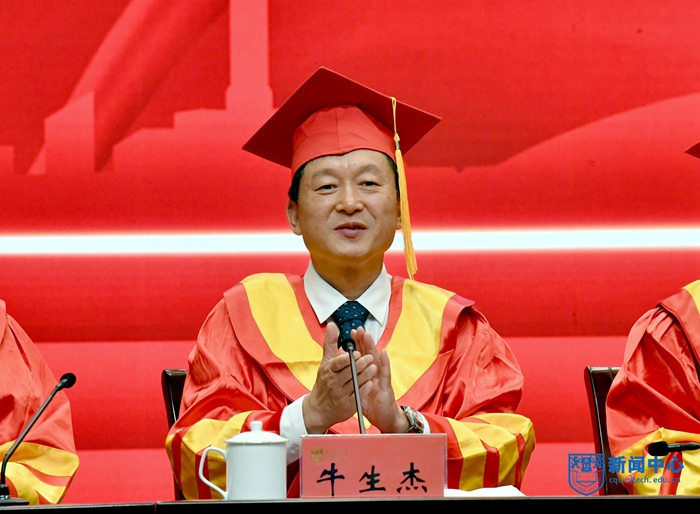 喬旭校長作了題為“青春奮進新時代 擔當有為新征程”的講話。他對畢業(yè)生提出了三點期望。一是立青春之志向,開時代之新局。新時代呼喚當代青年勇?lián)姑⒔永m(xù)奮斗,同學們要將自己的理想同祖國的前途緊密聯(lián)系起來,立下青春志向,明確奮斗目標,做好人生規(guī)劃;二是揚青春之朝氣,創(chuàng)人生之格局。艱難困苦,玉汝于成,同學們要堅定信念、昂揚斗志,保持勇往直前的精神氣度,以積極進取的姿態(tài)迎接未來的挑戰(zhàn);三是展青春之風采,應社會之大局。鷹擊天風壯,鵬飛海浪春,同學們要積極投身社會基層、建設一線、項目攻關的前沿,干事創(chuàng)業(yè)、增長才干,要接地氣、重實干,找準定位、腳踏實地,在廣闊天地中展現(xiàn)風采、實現(xiàn)價值。他鼓勵同學們要著力增強實踐能力和創(chuàng)新能力,爭做新時代科技創(chuàng)新的排頭兵,要鍥而不舍、敢于試錯,甘坐冷板凳、下足“笨功夫”,從國家急迫需要和長遠需求出發(fā),把論文寫在祖國的大地上,寫在車間里、裝置上、產品中,努力書寫無愧于時代的創(chuàng)新篇章。