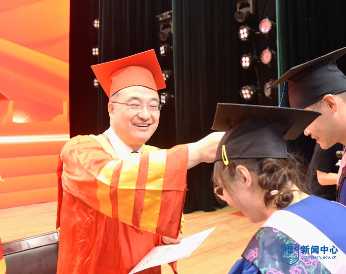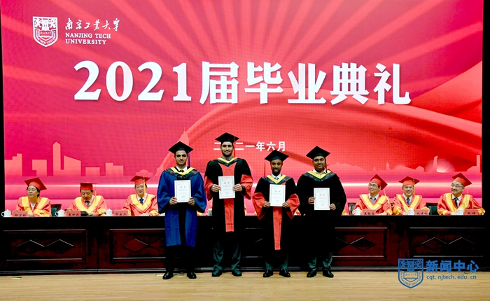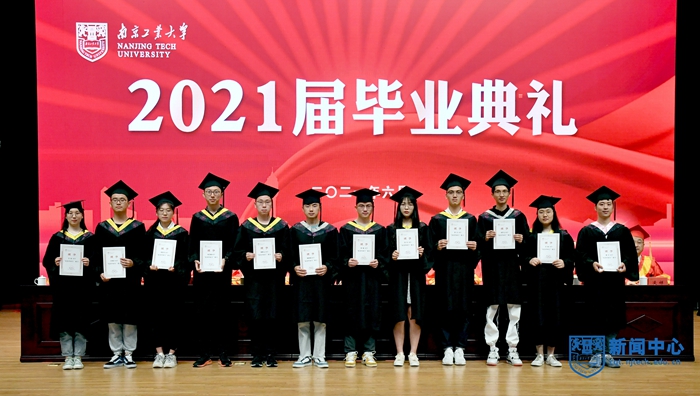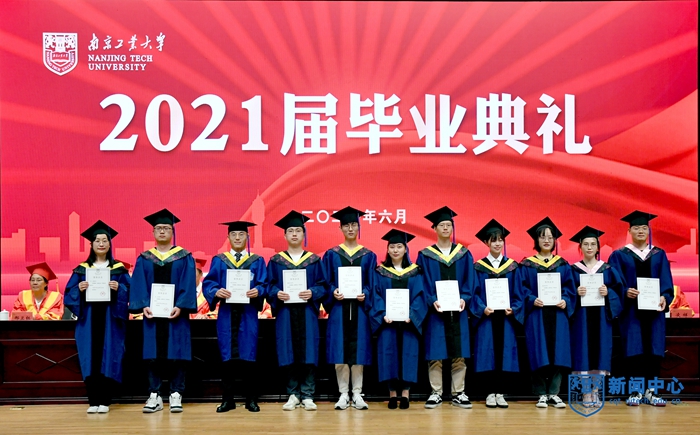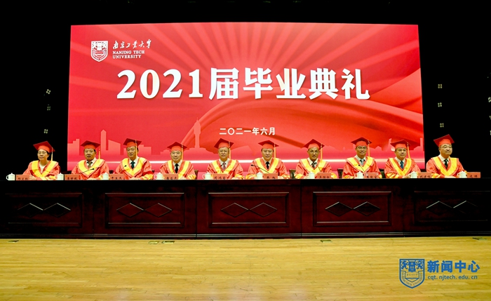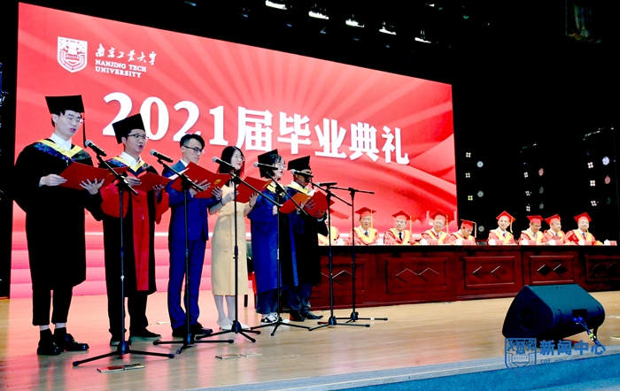 上午8:30,畢業(yè)典禮在莊嚴的國歌聲中拉開帷幕。校黨委書記芮鴻巖宣讀《關于表彰2021屆優(yōu)秀畢業(yè)研究生的決定》,校黨委副書記崔益虎宣讀《關于表彰2021屆本科優(yōu)秀畢業(yè)生的決定》,副校長牛生杰宣讀《關于表彰2021屆留學生優(yōu)秀畢業(yè)生的決定》,紀委書記王敦寶宣讀《關于表彰2021年度南京工業(yè)大學“啟明星計劃畢業(yè)生啟航獎學金”獲獎學生的決定》,副校長李世收宣讀《關于表彰2021年度南京工業(yè)大學“啟明星計劃西部省區(qū)就業(yè)援助行動”畢業(yè)生的決定》。校領導分別為博士畢業(yè)生、優(yōu)秀畢業(yè)研究生代表、本科優(yōu)秀畢業(yè)生代表、留學生優(yōu)秀畢業(yè)生、啟明星計劃獎學金獲獎畢業(yè)生頒發(fā)證書并授予學位。