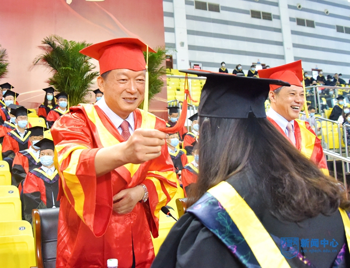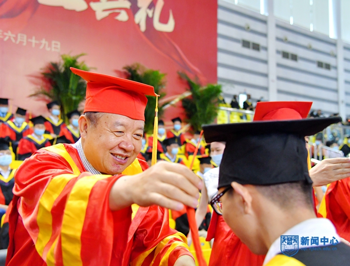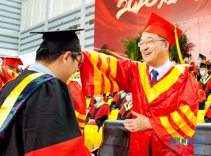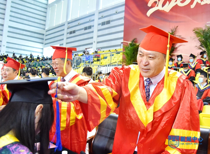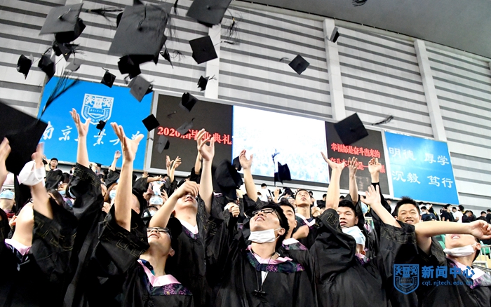 6月19日上午,我校2020屆畢業典禮在江浦校區體育館隆重舉行。校領導芮鴻巖、喬旭、崔益虎、牛生杰、李世收、鞏建鳴、吳勝紅、凌祥、趙志宏出席典禮。2020屆本科生、研究生畢業生、在校師生、校友代表以及家長代表、部分媒體記者現場參加典禮。10萬余人通過微博、微信、校園網等觀看直播。