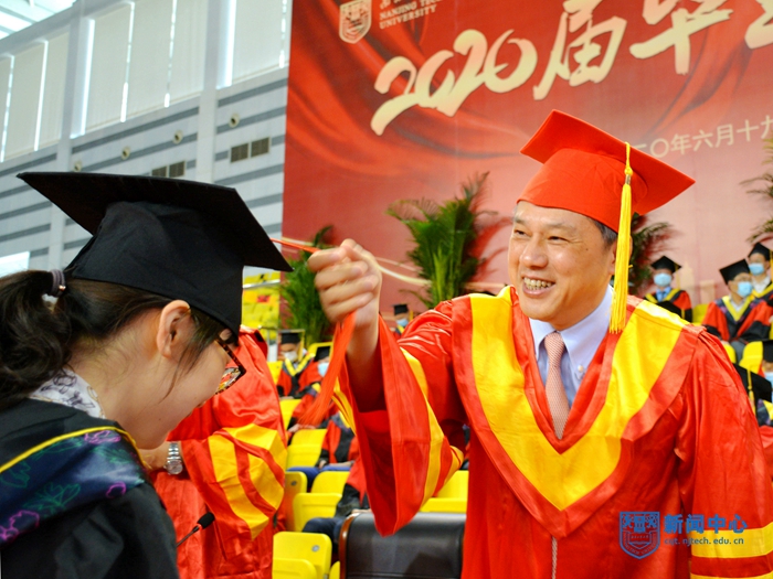 畢業典禮在莊嚴的國歌聲中拉開帷幕。校黨委書記芮鴻巖宣讀《關于表彰南京工業大學2020屆優秀畢業生的決定》,校黨委副書記崔益虎宣讀《關于表彰2020年度南京工業大學“啟明星計劃畢業生啟航獎學金”獲獎學生的決定》,副校長牛生杰宣讀《關于表彰2020年度南京工業大學“啟明星計劃西部省區就業援助行動”畢業生的決定》。校領導分別為博士畢業生和優秀畢業研究生代表、本科優秀畢業生代表頒發證書并授予學位。