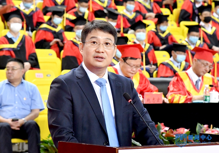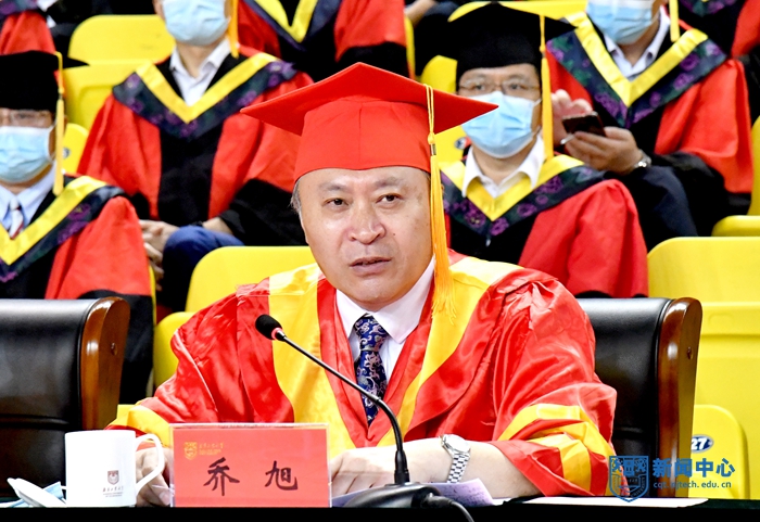 喬旭校長作了題為“在變化中成長,在堅守中致遠”的講話。他從“在變化中成長”“在堅守中致遠”兩個方面,寄語2020屆全體畢業生做好準備,迎接未來的變化和挑戰。他希望大家一要馳而不息,在變化中成長。研判形勢,變“小我”為“大我”,在不斷完善“小我”的同時,把個人理想與命運融入社會、融入國家、融入時代,乘風破浪,實現“大我”;練好內功,變“危機”為“新機”,適時調整認知和定位,扎實培養專業技能的同時,成為“多面手”和“雜學家”;調整觀念,變“就業”為“事業”,形成“梯度式就業”的擇業觀,精準人崗匹配的“職業錨”,練就自己核心競爭力的“金剛鉆”。二要久久為功,在堅守中致遠。堅守“雖千萬人吾往矣”的熱忱初心,用篤行拼搏的朝氣、探索鉆研的好奇、初生牛犢的勇氣和向陽而生的豁達,去闖、去拼、去奮斗、去追求;堅守“為有源頭活水來”的終身學習,不斷探索“書山之路”,努力兼得詩與遠方,讓創新和實踐成為自己行穩致遠的“兩條腿”和“兩把刷子”,多汲取他人和他處的經驗,成就自己的人生厚度;堅守“不破樓蘭終不還”的創業精神,將扎根大地、砥礪奮斗的學校精神根植于心,延續傳承創新創業基因,在各自領域勇立潮頭、施展抱負、心懷天下、創就事業,成為學校遍布海內外的最佳代言人。最后,喬校長引用贊格威爾的“所有一切都在變化,唯有變化不變”,殷切希望全體畢業生在未來變得更加自信、豐富、成功、幸福,在變與不變中成就美好人生。