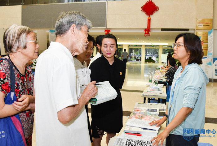 6月26日上午,我校2019年高考招生咨詢會在丁家橋科技創新大樓舉行。學校近百名招生宣傳人員積極參與,共同為廣大考生及家長提供全面準確的招生信息和細致周到的咨詢服務,現場氣氛熱烈。校黨委常委、副校長吳勝紅看望了招生宣傳人員,并和考生及家長進行親切交流。