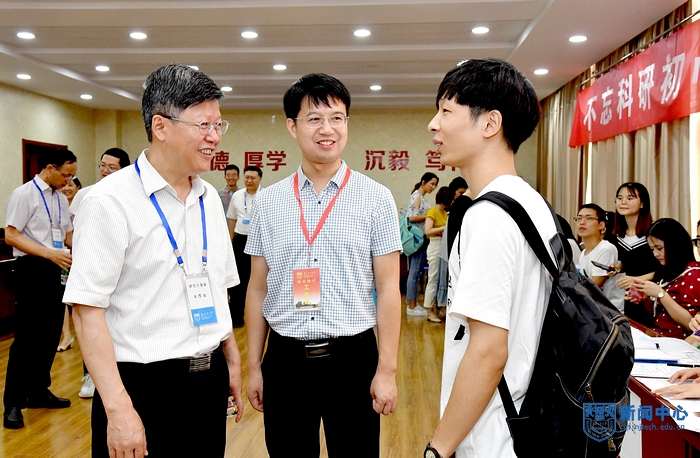 上午,校黨委書記芮鴻巖、校長喬旭、副書記崔益虎、副校長吳勝紅、副校長凌祥等校領導來到藝術、化工、機械、生工、安全、材料、土木等學院的新生接待工作現場和青教公寓博士宿舍區,熱烈歡迎2019級研究生新生,看望慰問工作人員和學生志愿者,仔細詢問研究生新生的報到情況,并和辦理手續的研究生親切交流。