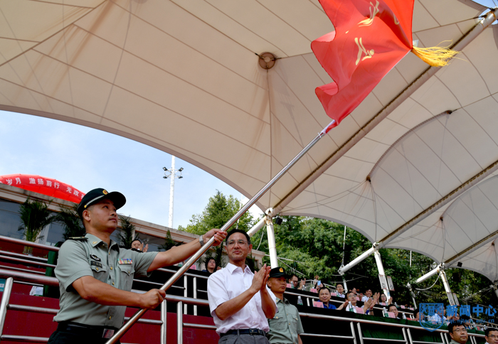 副校長吳勝紅代表學校黨委和行政、全校師生員工,向2019級本科新生表示熱烈歡迎,向長期支持和幫助我校軍訓工作的陸**程大學指揮控制工程學院的領導和全體教官表示最衷心的感謝。并對2019級本科新生提出三點要求:一增強國防意識,厚植愛國情懷;二堅持刻苦訓練,培養奮斗精神;三學會融會貫通,增強綜合素質。他希望同學們在軍訓中真正做到“掉皮掉肉不掉隊,流血流汗不流淚”,用實際行動和優異成績向新中國成立70周年獻禮。