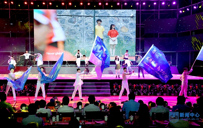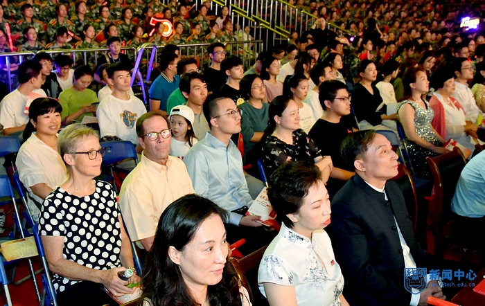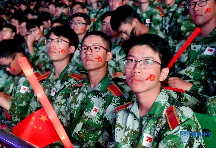 9月24日、25日兩晚,我校“光榮與夢(mèng)想”慶祝中華人民共和國(guó)成立70周年暨2019年迎新晚會(huì)在江浦校區(qū)體育館隆重舉行。校領(lǐng)導(dǎo)芮鴻巖、喬旭、李世收、邢衛(wèi)紅、吳勝紅、凌祥、郝建祥,黨委常委、黨委組織部部長(zhǎng)郭萬(wàn)牛,黨委常委、黨委辦公室主任、黨委統(tǒng)戰(zhàn)部部長(zhǎng)劉大衛(wèi),新生軍訓(xùn)旅旅長(zhǎng)劉良棟上校,副旅長(zhǎng)蘇融少校、鄭鵬上尉,江北新區(qū)公安分局內(nèi)保支隊(duì)副支隊(duì)長(zhǎng)王敏等領(lǐng)導(dǎo)嘉賓與相關(guān)職能部門負(fù)責(zé)人,各學(xué)院分管學(xué)生工作黨委(黨總支)書記、副書記,團(tuán)委書記,軍訓(xùn)教官,新生輔導(dǎo)員,2019級(jí)本科生、研究生及留學(xué)生代表歡聚一堂,共同觀看了演出。