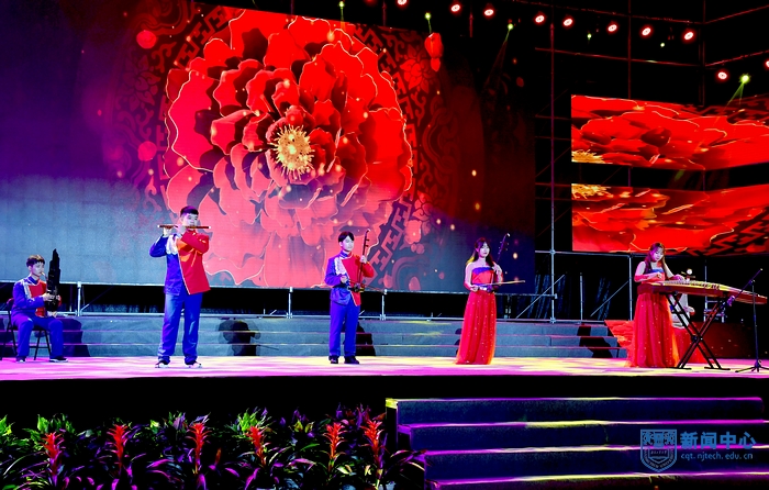 晚會(huì)在莊嚴(yán)的國(guó)歌聲中拉開序幕,共分為初心如炬、昂首屹立、筑夢(mèng)中國(guó)三個(gè)篇章。管樂合奏《紅旗頌》以宏偉莊嚴(yán)的旋律,表現(xiàn)了中國(guó)人民在紅旗的指引下,英勇頑強(qiáng),奮發(fā)向上的革命氣概。音詩(shī)畫《光榮與夢(mèng)想》選取祖國(guó)輝煌70年的若干個(gè)歷史瞬間和學(xué)校發(fā)展歷程的重要階段,致敬祖國(guó)70年的光輝歲月和一代代南工人奮發(fā)有為的蓬勃朝氣。情景舞蹈《少年中國(guó)說(shuō)》描繪愛國(guó)青年勇?lián)笕巍㈨频Z前行的動(dòng)人情景。民樂合奏《山丹丹開花紅艷艷》、合唱《保衛(wèi)黃河》表達(dá)中國(guó)人民在黨領(lǐng)導(dǎo)下不忘初心、牢記使命的決心和信心。教師代表經(jīng)典歌曲聯(lián)唱及師生代表共同演繹的原創(chuàng)散文詩(shī)朗誦《與祖國(guó)共奮進(jìn)》,展現(xiàn)了一代代南工人與祖國(guó)同呼吸共命運(yùn),立志工業(yè)強(qiáng)國(guó)的信念。武術(shù)舞蹈《龍的傳人》演繹了中華傳統(tǒng)文化的博大精深。特邀嘉賓江北新區(qū)公安分局民警的相聲表演《糖葫蘆受騙記》以案說(shuō)法,在寓教于樂中進(jìn)行防范詐騙警示教育。新生軍訓(xùn)教官表演的舞蹈《戰(zhàn)地榮光》盡顯軍人颯爽英姿。說(shuō)唱表演《新思想帶領(lǐng)我成長(zhǎng)》詮釋新時(shí)代南工青年在習(xí)近平新時(shí)代中國(guó)特色社會(huì)主義思想引領(lǐng)下,齊心共圓中國(guó)夢(mèng)的堅(jiān)定信念。小品《螞蟻戰(zhàn)隊(duì)》演繹了青年學(xué)生追逐夢(mèng)想的故事,展示了我校青年為“創(chuàng)業(yè)型大學(xué)”建設(shè)添磚加瓦的決心。由9家學(xué)生社團(tuán)帶來(lái)的串燒表演《未來(lái)已來(lái)》充分展示了校園文化生活的豐富多彩和青春活力。晚會(huì)在歌伴舞《我愛你中國(guó)》中落下帷幕,優(yōu)美的歌聲表達(dá)了全體師生對(duì)祖國(guó)母親70周年華誕的美好祝愿。