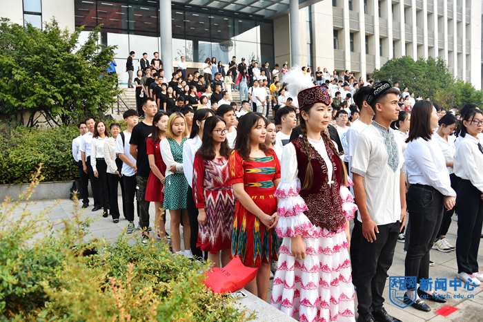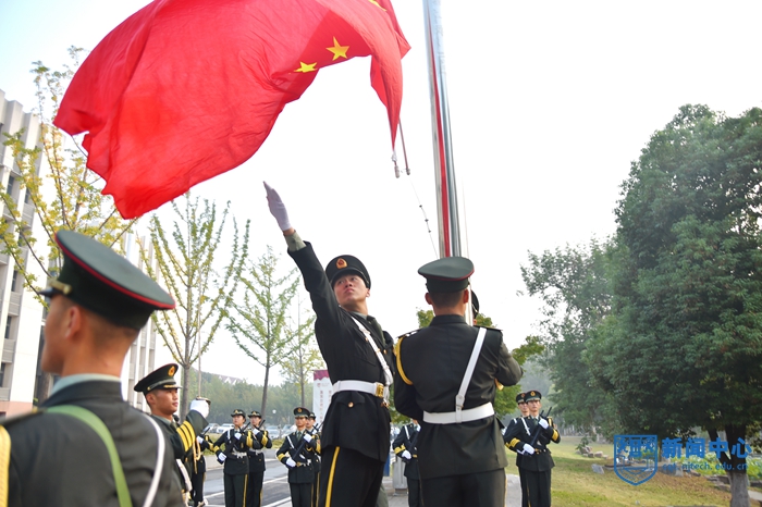 校領(lǐng)導(dǎo)芮鴻巖、喬旭、崔益虎、牛生杰、李世收、鞏建鳴、邢衛(wèi)紅、吳勝紅、凌祥、郝建祥、趙志宏,校黨委常委張健、劉大衛(wèi)及全校400余名師生代表參加升旗儀式。