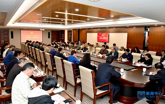 10月8日上午,學校在江浦校區重點實驗室三樓會議室召開“不忘初心、牢記使命”主題教育工作推進會。校領導芮鴻巖、崔益虎、吳勝紅、郝建祥出席會議,各黨群部門主要負責人、各基層黨委(黨工委、黨總支)書記參加會議。省委第九巡回指導組列席指導。會議由校黨委常委、副校長吳勝紅主持。