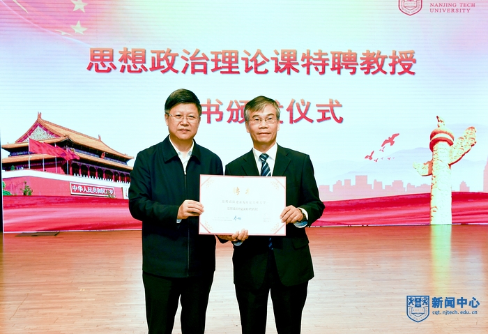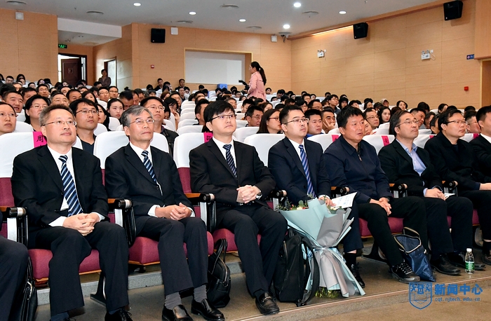 事跡報告會開始前,學校還舉行了聘任儀式,聘任陸建新校友為我校思想政治理論課特聘教授。校黨委和行政領導班子成員、學校全體中層干部,學院師生代表參加了報告會。